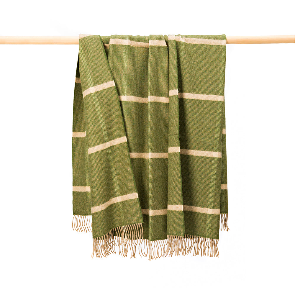 Wool Angora Throw Green Cream Windowpane Check. Made with a blend of Superfine and Caregora Angora wool. A truly soft and luxurious throw with classic colours across the collection. 75% Superfine Wool 25% Caregora Angora.