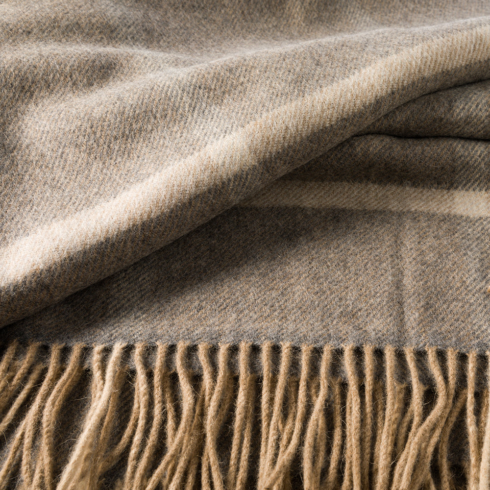 Wool Angora Throw Grey Silver Windowpane Check. Made with a blend of Superfine and Caregora Angora wool. A truly soft and luxurious throw with classic colours across the collection. 75% Superfine Wool 25% Caregora Angora.