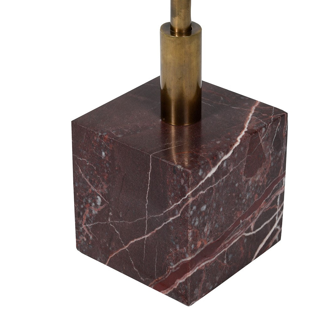 A solid marble base and brass top with unique veining means no two pieces are the same.