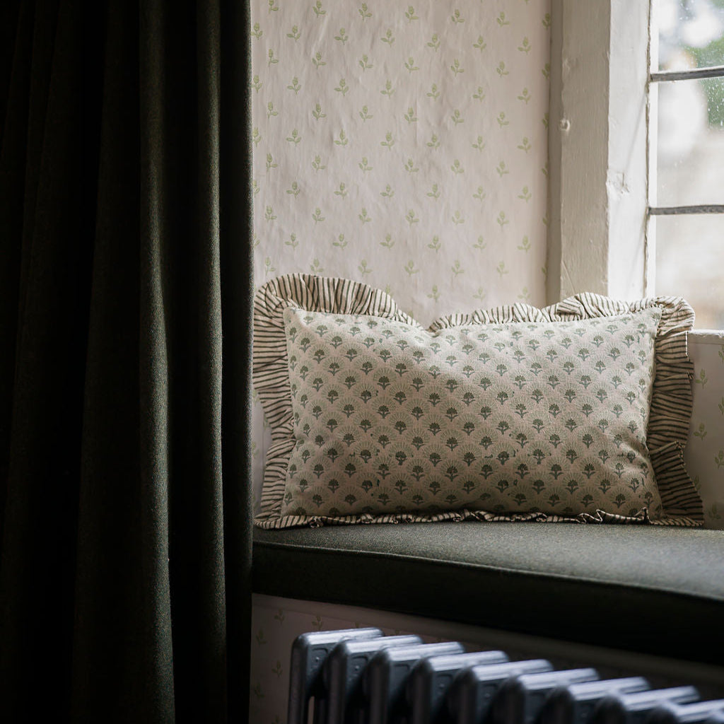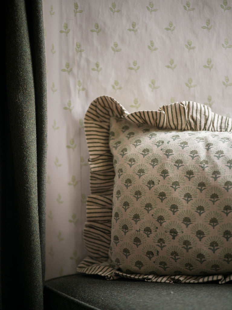 Each cushion is created using traditional block printing techniques, where skilled artisans apply one layer of colour at a time. This method allows for subtle shifts in tone and occasional misalignments where layers may not meet perfectly — a hallmark of true handwork. Rather than imperfections, these details are a celebration of the process: tactile, honest, and quietly individual.