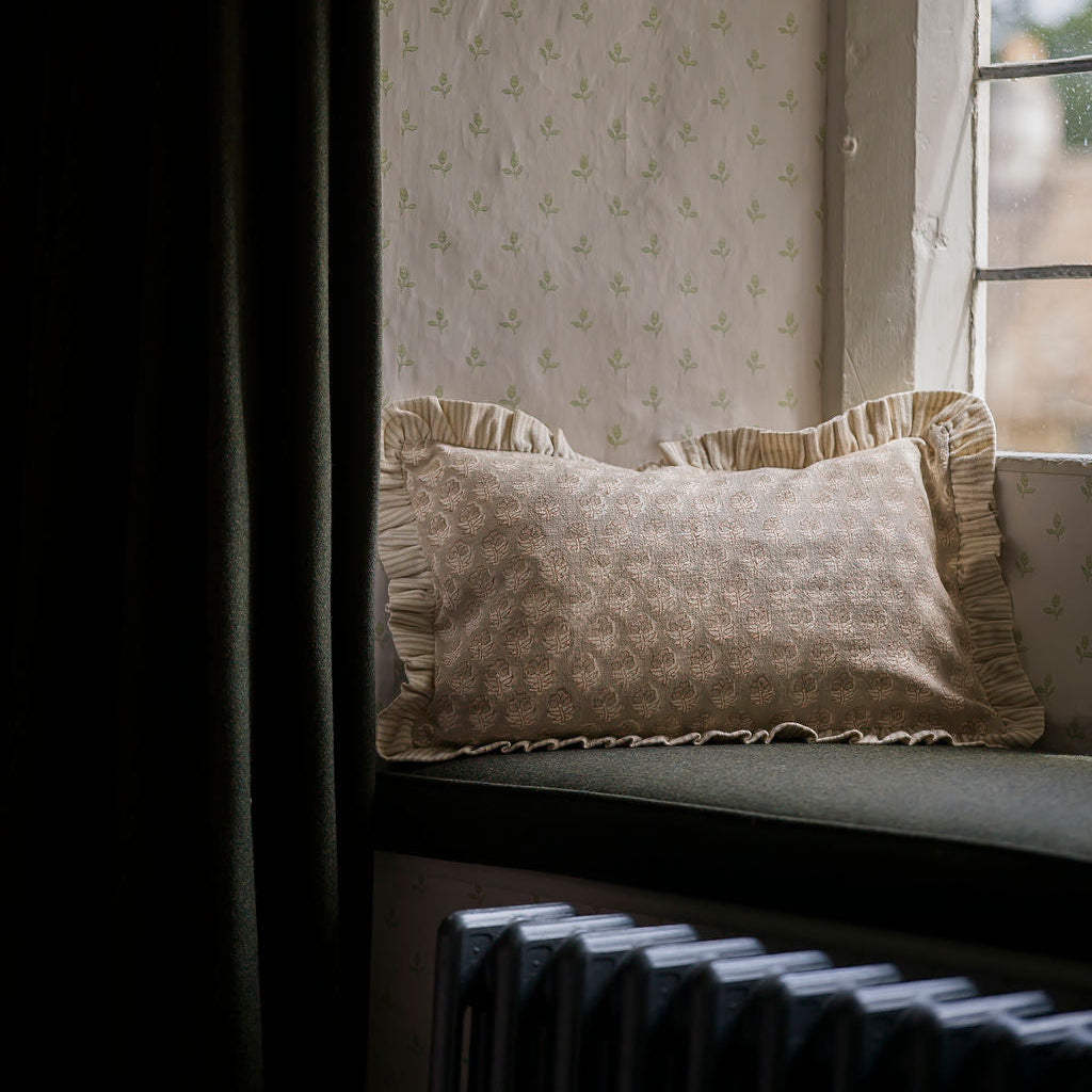 Each cushion is created using traditional block printing techniques, where skilled artisans apply one layer of colour at a time. This method allows for subtle shifts in tone and occasional misalignments where layers may not meet perfectly — a hallmark of true handwork. Rather than imperfections, these details are a celebration of the process: tactile, honest, and quietly individual.
