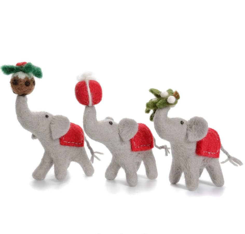 Choose from an Elephant with a Present, Mistletoe Sprig or Christmas Pudding in their trunk.