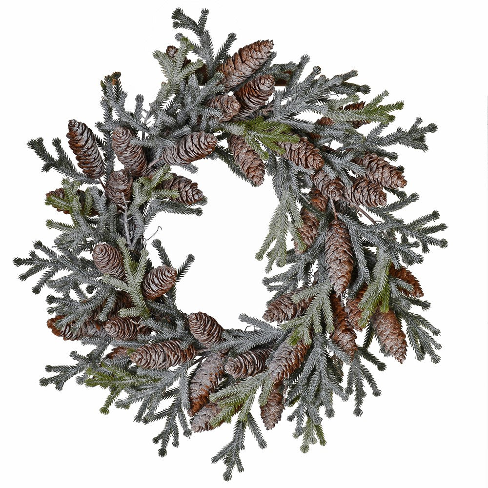A cheery welcome home, our wreath is one of our favorite ways to greet guests over the festive season. Including fir branches, frosted pine with cones dotted throughout, for a full display. With a natural vine base, it can be hung on front doors, walls, or laid flat on a table and used as a centrepiece.