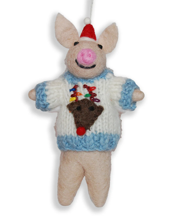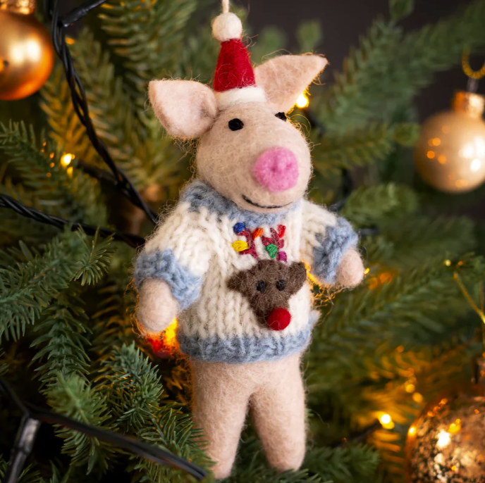 Featuring a cute curly tail, this adorable piglet is handmade in Nepal from 100% wool felt, free from plastic, and Fair Trade certified. Ready to hang with its included loop, it’s the perfect charming decoration for your holiday celebrations.