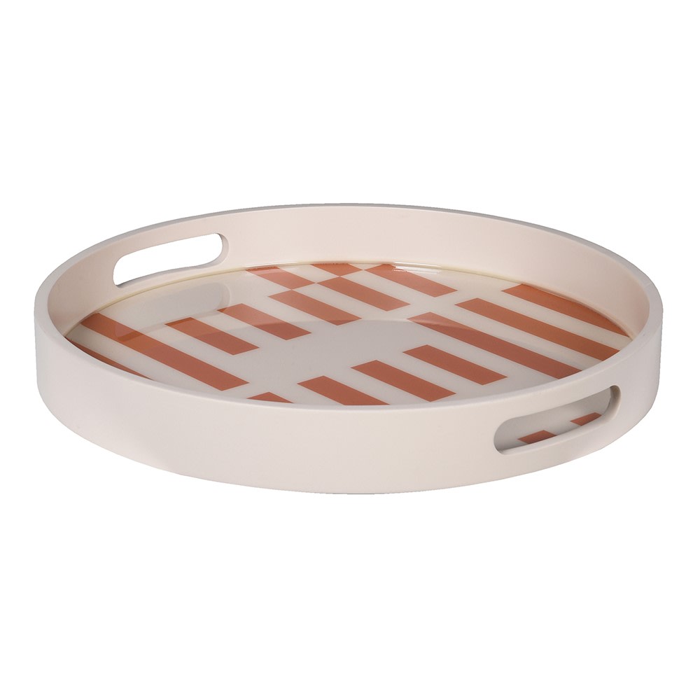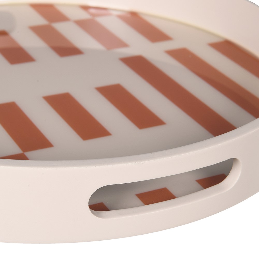 Our round studio tray is the perfect little tray for a kitchen or living room. The retro orange pattern means you can leave it uncovered to show off the pattern below.